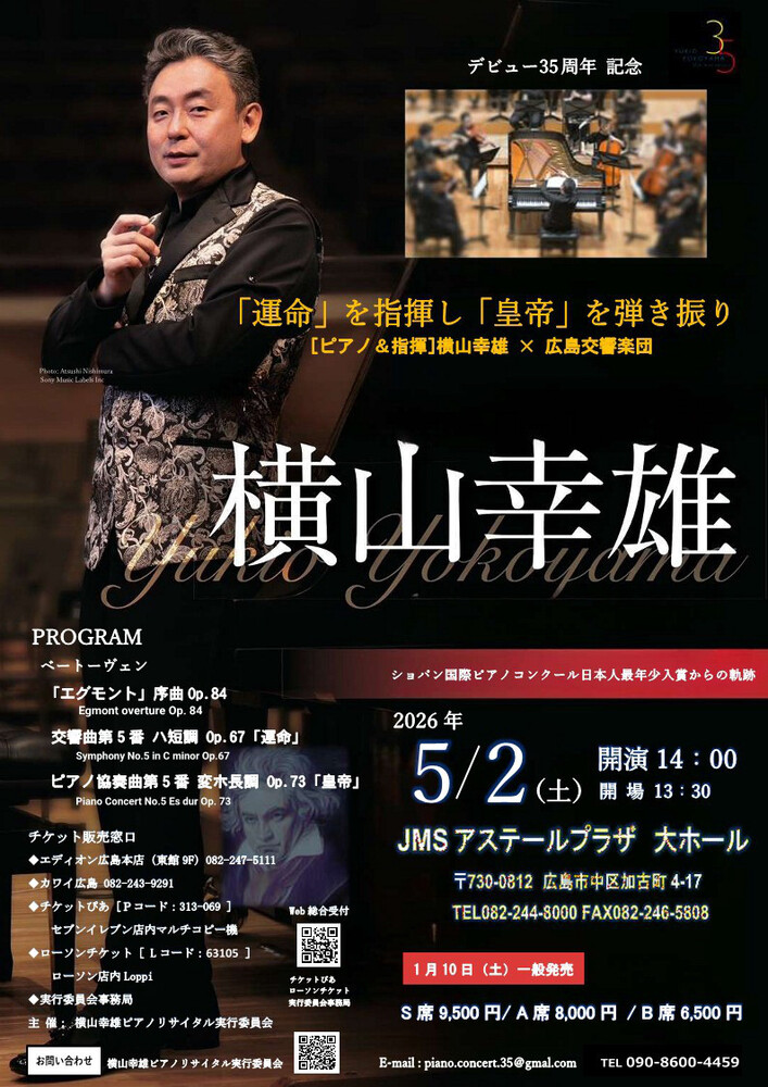 「運命」を指揮し「皇帝」を弾き振り 横山幸雄×広島交響楽団